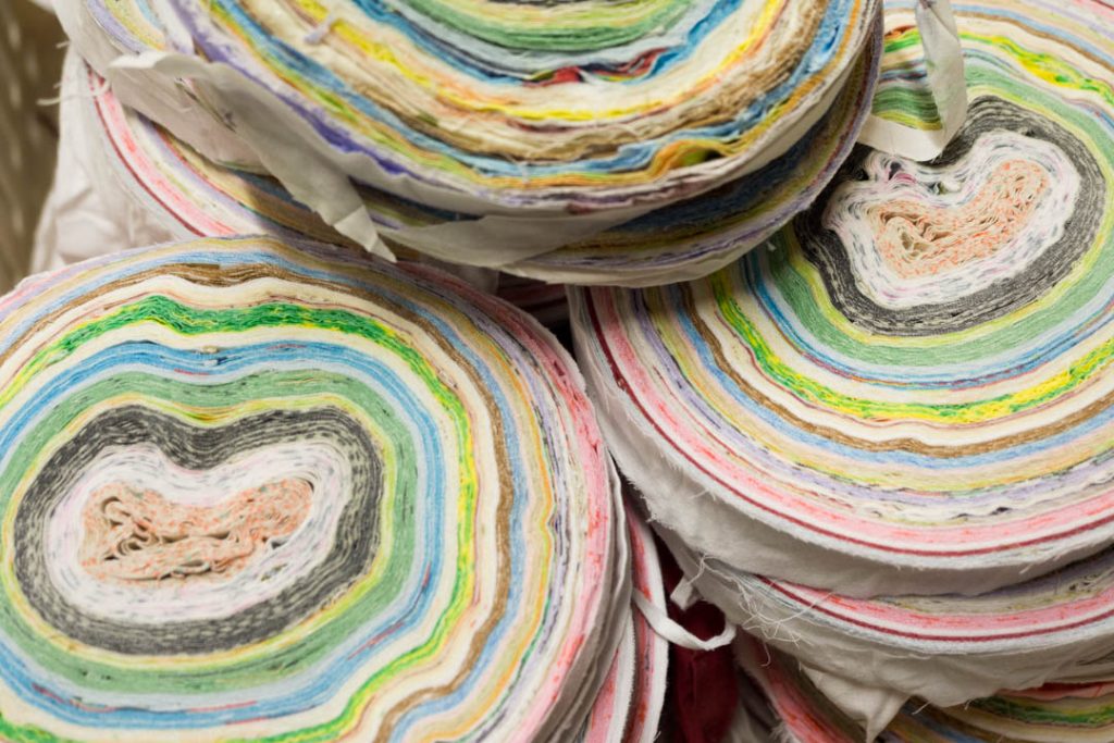 Finlayson business model is based on collecting used bed sheets and recycling them into rag rugs. The company began collecting home textiles in its shops, but also brought recycling within reach of customers by using its online store: customers who have chosen to have their purchases sent in RePack recycling packages can return their old sheets to Finlayson in the same package. Finlayson uses the sheets it has collected to manufacture rag rugs. The rag rug pieces are manufactured in Finland in collaboration with VM-Carpet Oy’s subcontractors, Lappajärven värjäämö (washing of the sheets), Viita-ahon Mattokutomo (sewing and cutting wefts) and Ismo Pajuoja (weaving rag rugs). The colours of the rugs are determined by the sheets collected as they are not dyed at any stage.