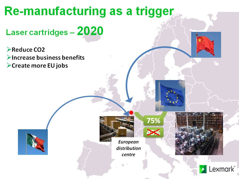 - By 2020, 75% of Lexmark cartridges that will be placed on the market in the EU will be made in the EU.